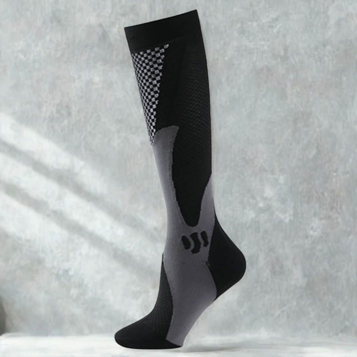 Met klinisch bewezen 20–30 mmHg gradient compressie en een mix van nylon, spandex en katoen ondersteunt het de bloedsomloop, verlicht het spanning en vermindert het voelbaar vermoeidheid — al binnen enkele dagen.